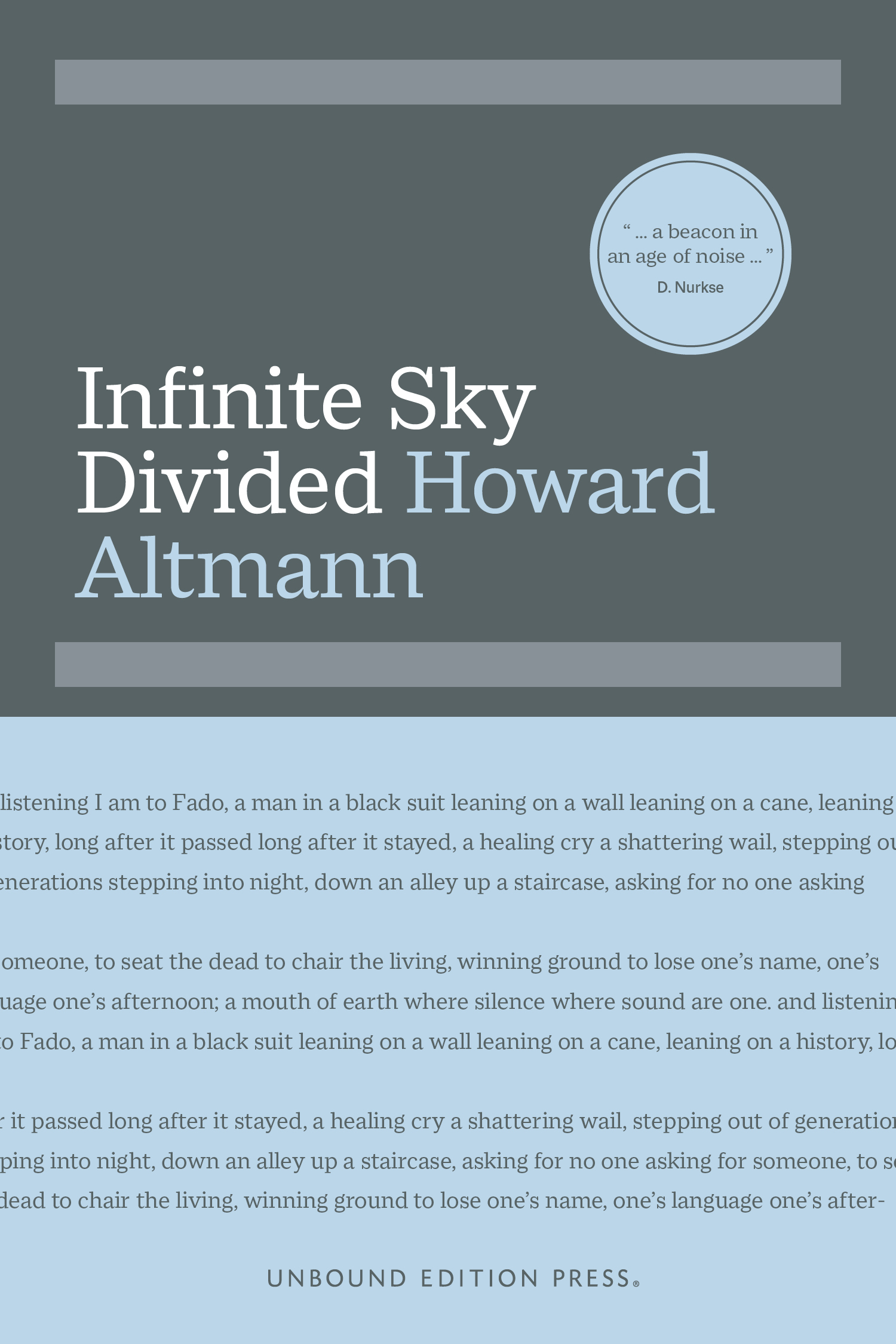 Unbound Edition Press champions honest, original voices. Committed to the power of the literary arts to explore and illuminate the contemporary human condition, we publish collections of poetry, short fiction, and essays. We aim to identify, develop, and defend writers who create thoughtfully challenging work which may not find a home with mainstream publishers.